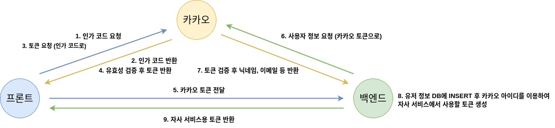 사실 처음 소셜 로그인을 공부할 때 프론트엔드가 인가 코드를 카카오 측으로부터 받아와 백엔드에게 넘겨주고, 다시 백엔드가 해당 인가 코드를 가지고 카카오 측에게 토큰을 받아오는 방식으로 학습을 했다. 백엔드에서 유저 정보를 가져오기 위해서 한번은 카카오 측에게 요청을 보내야 하는데 토큰까지 받아오는 요청을 하는 게 번거로워 프론트에게 토큰까지 받아달라고 요청을 했고 합의가 되었다.