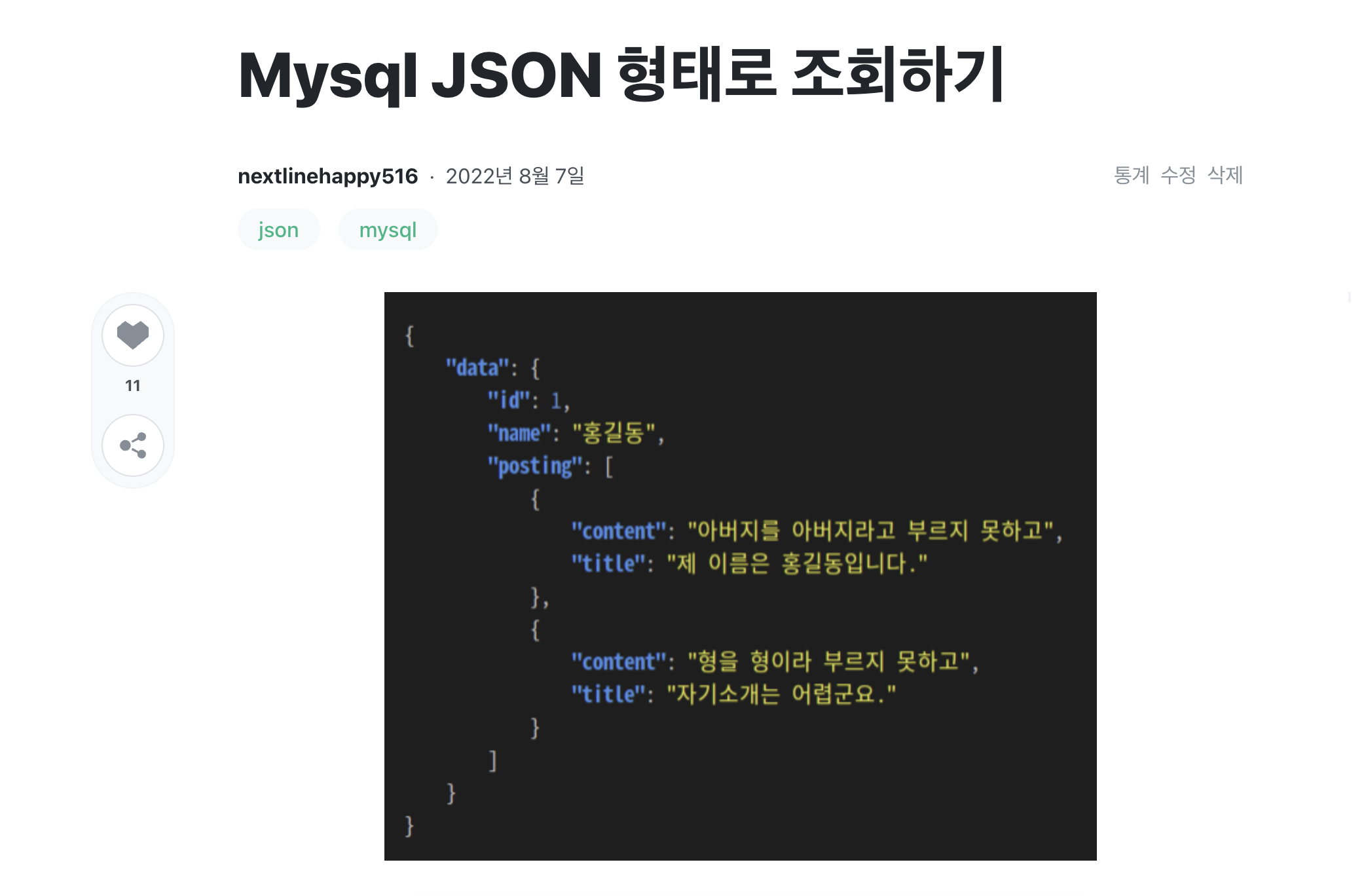 지식 공유의 즐거움을 느끼게 해준 첫번째 게시글이라 의미가 있어 기록으로 남기고 싶었습니다.