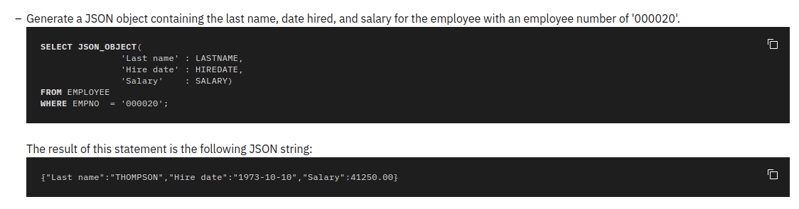 mysql> SELECT JSON_OBJECT('id', 1, 'name', 'Jack');
