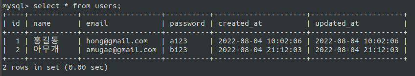 사용법은 위와 같다. JSON_OBJECT를 사용하여 key, value를 순서대로 나열하면 객체의 형태로 결과를 보여준다. 사실 실제 데이터가 아니라 해당 function의 실행 결과를 보여준 것이다. 그럼 실제 데이터로 예를 들어보겠다.