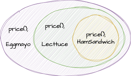 - Lecttuce는 HamSandwich의 price() 메소드를 호출