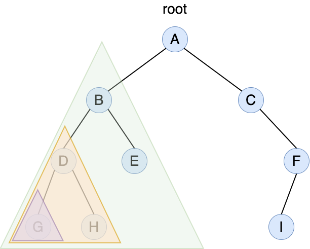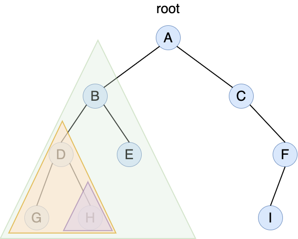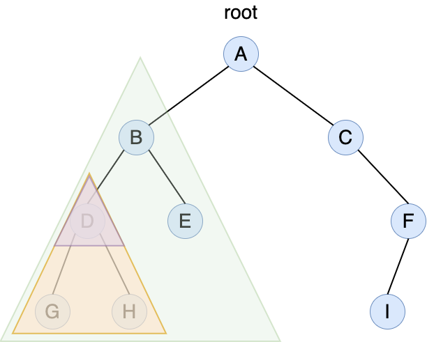 하위의 노드가 있기 때문에 또 D를 root로 삼는다.