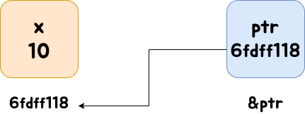 ptr 변수는 변수 x의 주소값을 가리키고 있다.